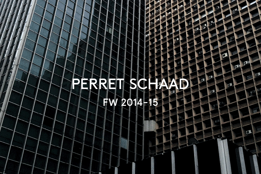 The intimate, exclusive atmosphere of the comparably small room at David Chipperfield’s architecture office in Berlin-Mitte was combined with the mysterious glow of a huge moonlight lamp situated in the backyard as the models accented onto a shoulder high runway to frame the Fall-Winter 2014/15 show of Perret Schaad. The audience was able to watch the 21 looks of the collection not only from inside, but also from the backyard and the street.
