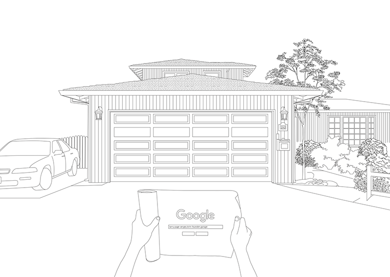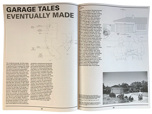 Garage Tales illustrates the story of 14 projects whose founders originated in residential garages and describes home-made stories of success, adaptation and aspiration. The case studies from coffee makers to yard sales were researched and documented through various kinds of drawings, collages and annotations to display a historical, geographical and cultural context between the independent examples on the West Coast of the USA and finally exhibited as part of the Butler Travel Fellowship at the Princeton SoA.