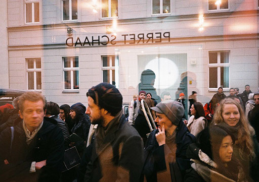 The intimate, exclusive atmosphere of the comparably small room at David Chipperfield’s architecture office in Berlin-Mitte was combined with the mysterious glow of a huge moonlight lamp situated in the backyard as the models accented onto a shoulder high runway to frame the Fall-Winter 2014/15 show of Perret Schaad. The audience was able to watch the 21 looks of the collection not only from inside, but also from the backyard and the street.
